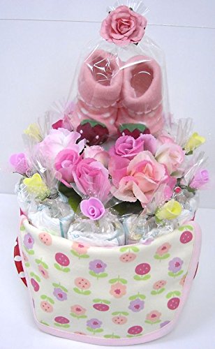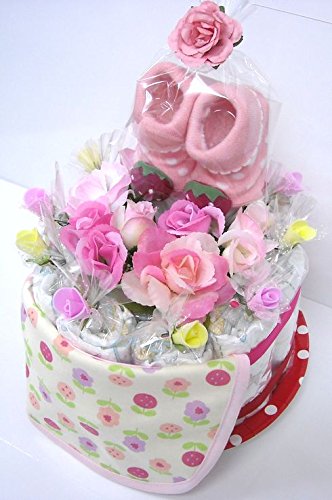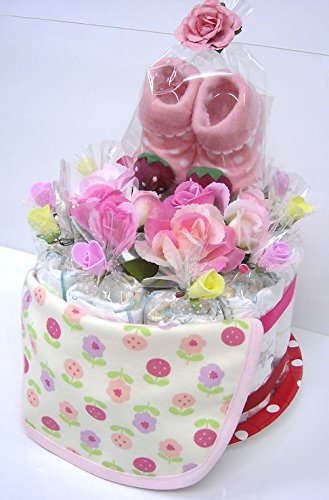 ご出産お祝い<おむつケーキ> リーズナブルなお値段のかわいいおむつケーキ ラウンドK (女の子用)