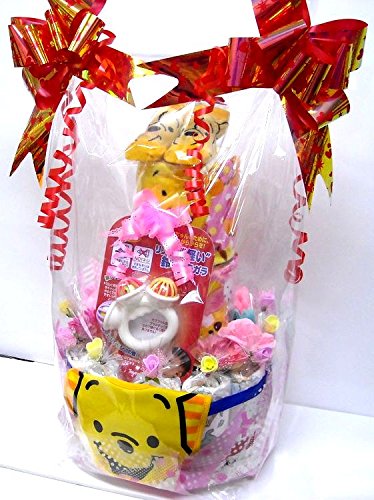 男の子用にミッキー、女の子用にミニー、男女共用にくまのプーさんをご用意しました。それぞれに、ベビーソックスとベビービブ、ベビー玩具、ハンドタオル、フェイスタオルが付いています。 シーズンや作成時期により、使用するお花や付属品などが多少変わる事もございますが、全体のイメージが大きく変わることはございません。