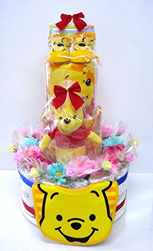 出産祝い オムツケーキ 豪華3段おむつケーキ ディズニー3M 男女共用 くまのプーさん