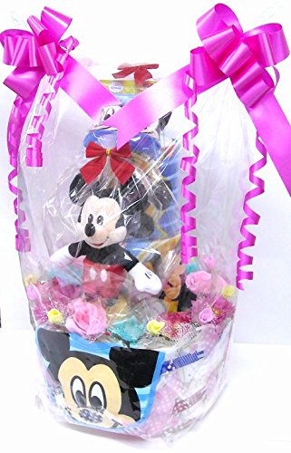 男の子用にミッキー、女の子用にミニー、男女共用にくまのプーさんをご用意しました。それぞれに、ベビーソックスとベビービブ、ヌイグルミ、ハンドタオル、フェイスタオルが付いています。 シーズンや作成時期により、使用するお花や付属品などが多少変わる事もございますが、全体のイメージが大きく変わることはございません。