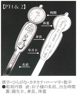 これは「銀のスプーンをくわえて生まれてくる」というヨーロッパのことわざで、食べ物に困らない、生まれながらにして財産を持っているなどという意味があります。将来、お金に困らない裕福な生活ができる様にとの願いが込められています。 ヨーロッパでは、そんな願いを込めて、赤ちゃんに誕生のお祝いとして銀のスプーンを贈る習慣があるのです。 ●彫刻内容/お名前、お誕生日、出生時間、身長、体重 ●お名前/漢字、ひらがな、カタカナ、ローマ字 ●お名前文字数/12文字まで、 ●生年月日/西暦 ●お届け/約2週間