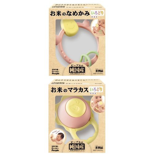 お米でできたおもちゃのシリーズ。なめかみとマラカスのセット。