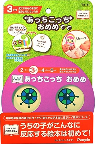 2か月から反応して喜ぶ、はじめての読みきかせTOY本が誕生!! 気になるものを目で追うようになったら… 人の顔、特に「目」をじっと見つめるようになる頃。 いろんな「おめめ」が詰まったページ仕立てで、紙芝居のように1枚ずつめくって話しかけながら読みます。 思わず見ちゃうユニークおめめがいっぱい! 対象年齢 :3か月から