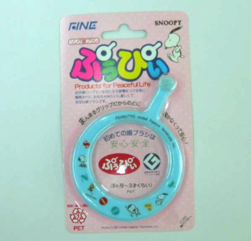 • ぷぅぴぃリング歯ブラシ ブルーは、スヌーピーのイラスト入りの、喉まで届かないリング型グリップの歯ブラシ。歯の汚れが落ちやすい、短めの植毛です(ブルー)。