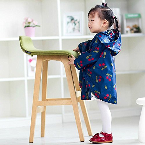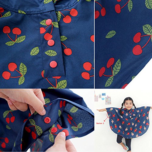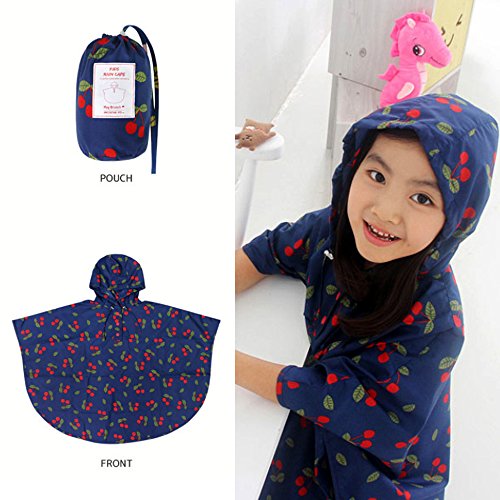 ファッションホーム- キッズ レインコード ポンチョタイプ カッパ 通園 旅行 サクランボ ネービー(Sサイズ)