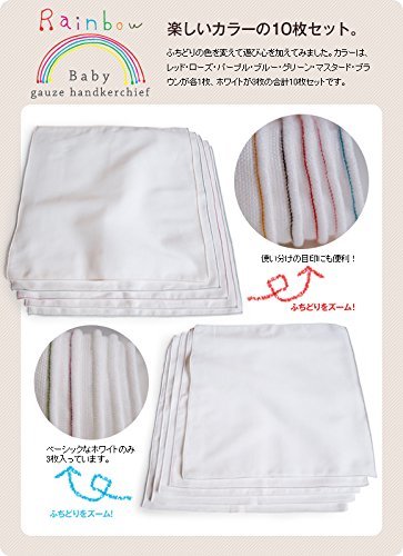 Fabric + ベビーガーゼハンカチ(2枚合わせ) レインボー(7色各1枚/ホワイト3枚) 10枚セット