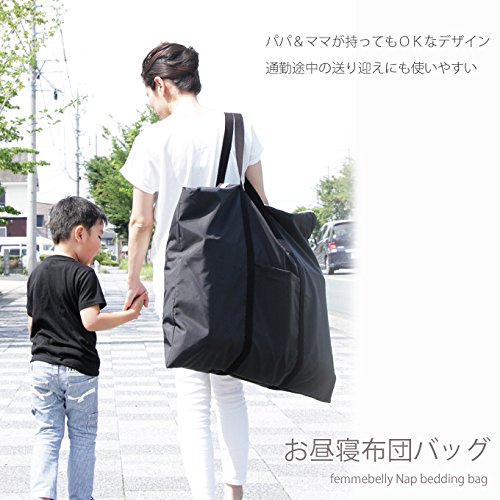 お昼寝布団バッグ 大容量 撥水 保育園 幼稚園 お昼寝布団 収納バッグ 手提げ 手提げバッグ トートバッグ 幼稚園バッグ 旅行カバン【日本製】 ファムベリー (ブラック)