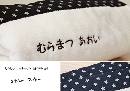 綿毛布 名入れ無料 出産祝い ブランケット 名入れ お昼寝 入園準備 ベビー布団 名入れ お名前 毛布 綿100% 刺繍無料 日本製送料無料 お名前刺繍する (スター(ネイビー))