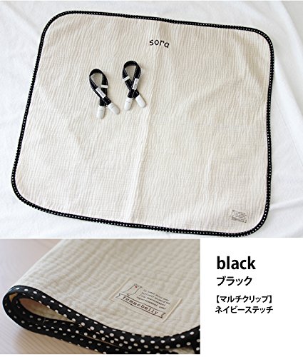 無料名入れ刺繍♪日本製のベビーカーケット♪ お名前刺繍する ファムベリーの世界にひとつだけの贈り物。ブランケットとマルチクリップのセット。出産祝いにぴったり 【日本製】綿100%。お昼寝タオル ブランケット ベビーカーケット ダブルガーゼ ファムベリー (ブラック)