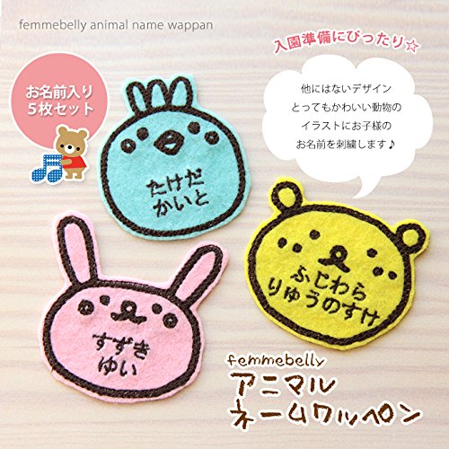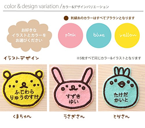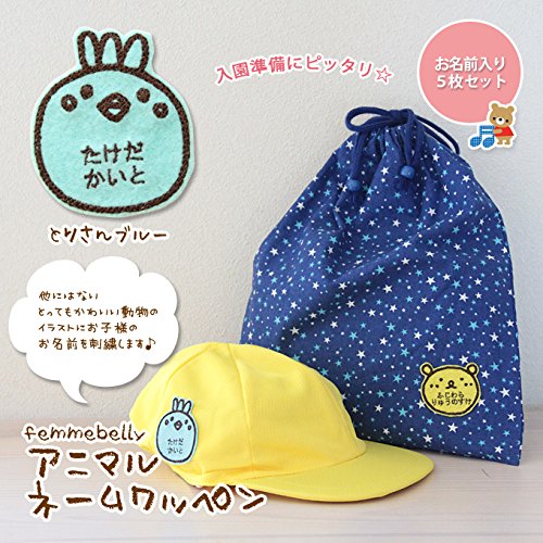 【刺繍で名入れいたします】 アニマルネームワッペン 【お得な5枚セット】 お名前刺繍する 他にはないかわいいワッペン♪ 刺繍だから長く使える 【日本製】 (とりさん×ブルー)