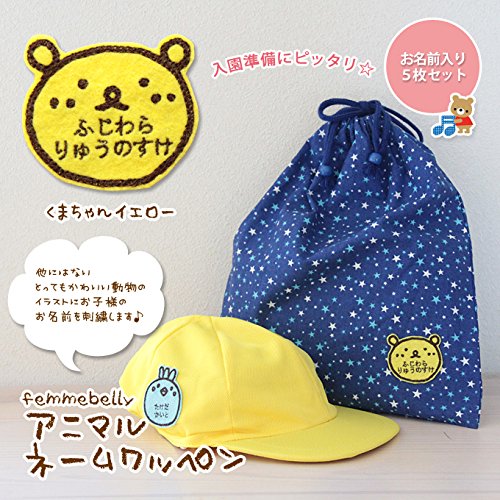 【刺繍で名入れいたします】 アニマルネームワッペン 【お得な5枚セット】 お名前刺繍する 他にはないかわいいワッペン♪ 刺繍だから長く使える 【日本製】 (くまちゃん×イエロー)