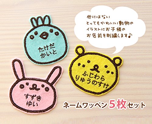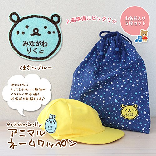 【刺繍で名入れいたします】 アニマルネームワッペン 【お得な5枚セット】 お名前刺繍する 他にはないかわいいワッペン♪ 刺繍だから長く使える 【日本製】 (くまちゃん×ブルー)