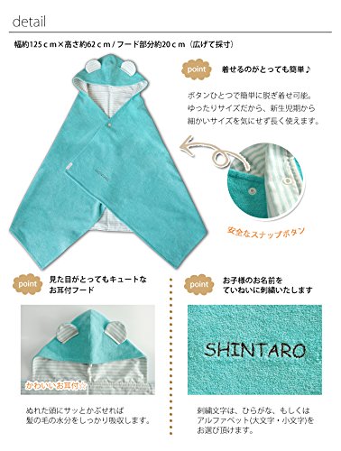 【無料名入れ】 かわいいお耳付き バスポンチョ★ お名前刺繍する お風呂上り・水遊びに◎おくるみ代わりにも 優しい肌触りで赤ちゃんから使える♪ 出産祝い 【日本製】 (ブルー)
