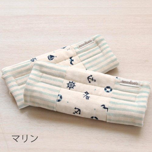 【8重ガーゼのやわふわ よだれパッド(2枚組)】抱っこ紐・ベビーカー・チャイルドシートの肩紐をカバー♪肌にやさしく衛生的 かわいくアレンジ! 日本製 ファムベリー (マリン)