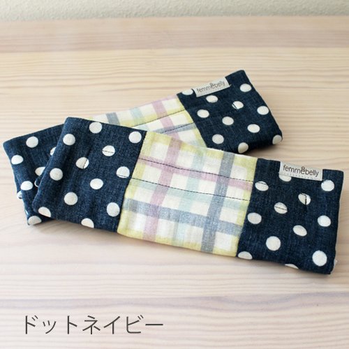【8重ガーゼのやわふわ よだれパッド(2枚組)】抱っこ紐・ベビーカー・チャイルドシートの肩紐をカバー♪肌にやさしく衛生的 かわいくアレンジ! 日本製 ファムベリー (ドットネイビー)