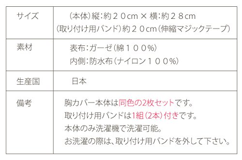 - 素材 表布:ガーゼ綿100% 防水布:ナイロン100%