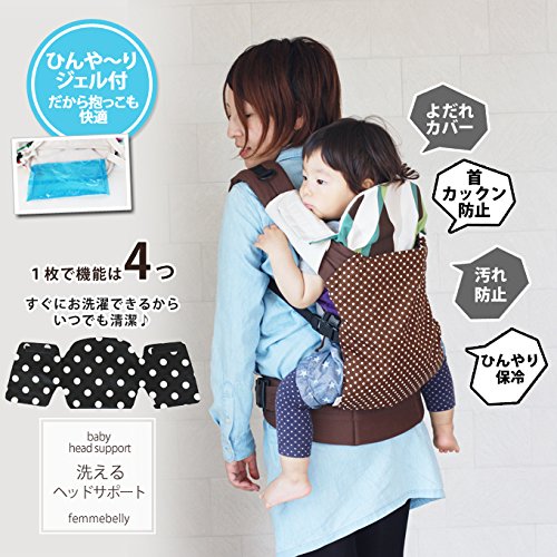 1枚で機能は4つのヘッドサポート。よだれカバー、首カックン防止、よごれ防止、ひんやり保冷。