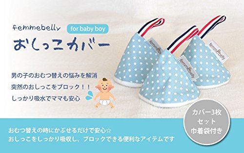 おしっこカバー オムツ替え おしりふき おしっこ防止 日本製 男の子 3個組 ファムベリー ドットブルー