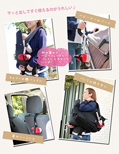 バックル付きで、ベビーカー、抱っこ紐、バックの持ち手 などに付けて持ち歩きできます