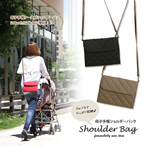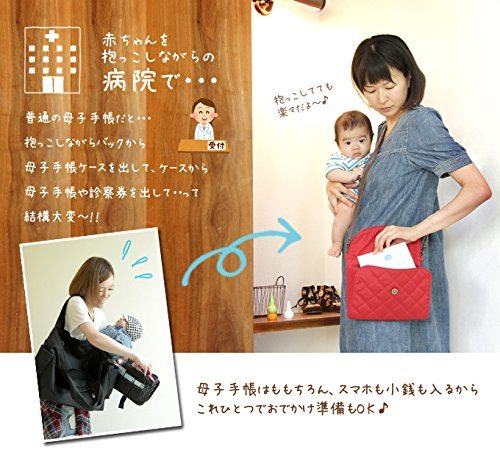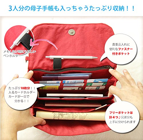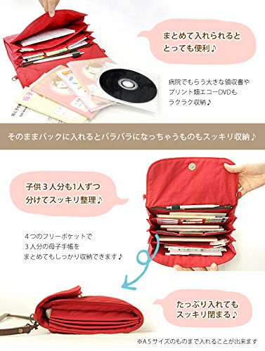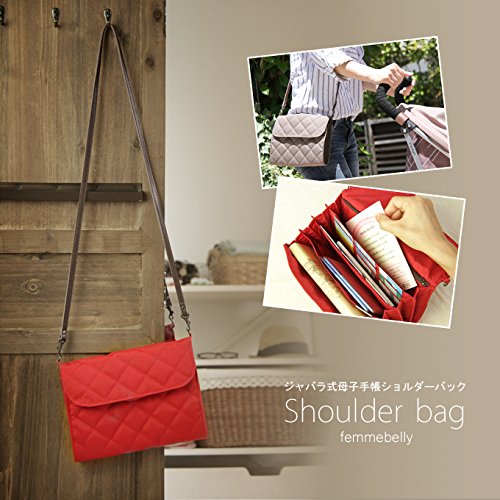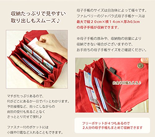 ファムベリー 母子手帳 ショルダーバック Lサイズ 収納力抜群 母子手帳ケース ジャバラ式 3人分 2人分 日本製 レッド 赤