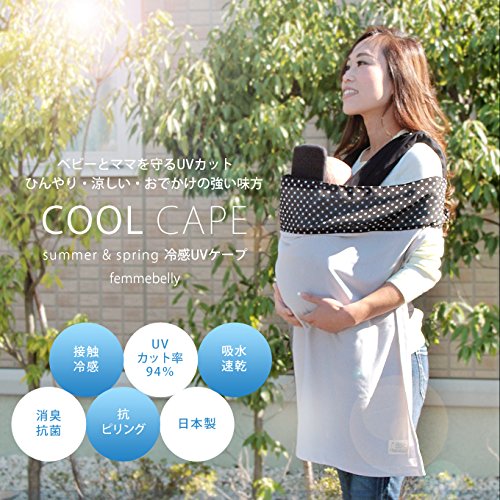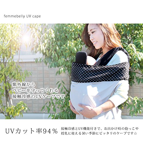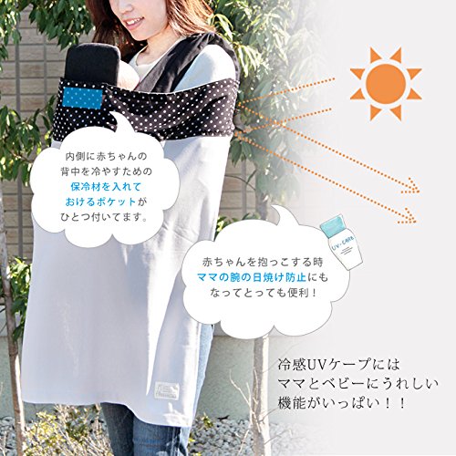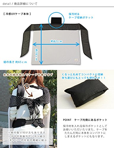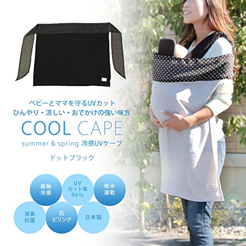【接触冷感とUVカット機能付き】 夏のお出かけに★ 冷感UVケープ 【日本製】 抱っこ紐やベビーカーでのおでかけに◎ 紫外線からベビーを守る (ドットブラック)