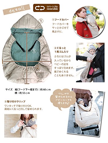 【冬物セール!】冷たい風もへっちゃら♪ 抱っこ紐用2way 防寒カバー おんぶやベビーカーでも使えて便利♪ 日本製 (ネイビー×グレー)