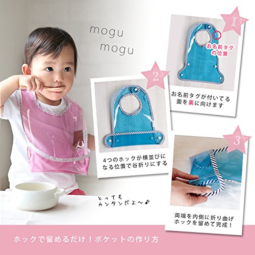 透明の立体ポケットが食べこぼしをしっかりキャッチ! ポケットはホックで簡単に作ることが出来ます!お手入れもサッと流すだけでOK! お食事エプロンっていろんな種類がありますよね・・・ どれがいいのかわからないし、使ってみると意外と使いにくかったり・・・ 色んなお食事エプロンの、良いところだけを集めた機能的でかわいい1枚です♪ お家やお出かけ先・・どんな場所でも、毎日のお食事はこれさえあればOK! ファムベリーのお食事エプロンは使いやすさにこだわって、立体ポケットとビニール生地を採用! 食べこぼしをしっかりキャッチし、やわらかくて薄手だから、赤ちゃんも嫌がらず、バックに入れてもかさばらないから、お出かけや旅行に最適です!
