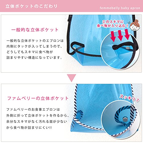 立体ポケットが食べこぼしをキャッチ! スタイ【お食事ビニールエプロン】サッと流すだけでお手入れ簡単!持ち運びもコンパクト♪ 日本製 (ブルー)