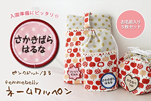 【入園・入学準備に♪】 ネームワッペン お得な5枚セット お名前刺繍する 【日本製】 ファムベリー (ピンクドット×まる)