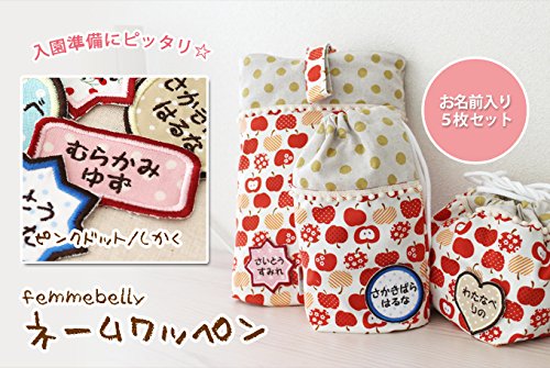 【入園・入学準備に♪】 ネームワッペン お得な5枚セット お名前刺繍する 【日本製】 ファムベリー (ピンクドット×しかく)