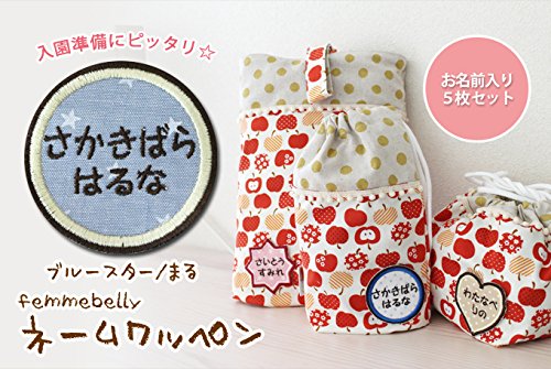 【入園・入学準備に♪】 ネームワッペン お得な5枚セット お名前刺繍する 【日本製】 ファムベリー (ブルースター×まる)