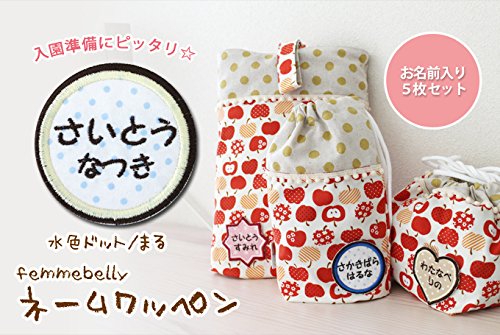 【入園・入学準備に♪】 ネームワッペン お得な5枚セット お名前刺繍する 【日本製】 ファムベリー (水色ドット×まる)