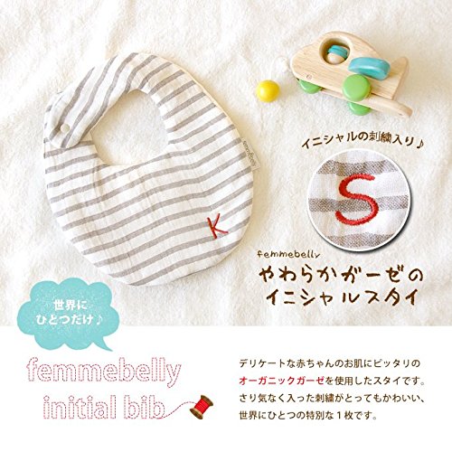 【やわらか6重ガーゼの イニシャルスタイ】イニシャル刺繍入り デリケートな赤ちゃんのお肌にピッタリ♪ やわらか&ふんわり☆オーガニックガーゼ ファムベリー (イニシャル【S】)