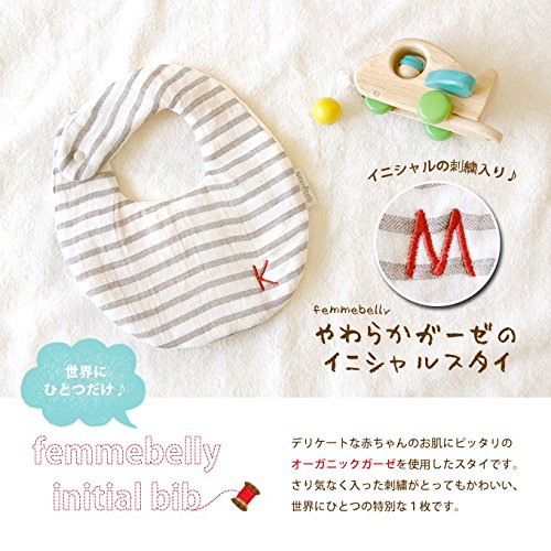 【やわらか6重ガーゼの イニシャルスタイ】イニシャル刺繍入り デリケートな赤ちゃんのお肌にピッタリ♪ やわらか&ふんわり☆オーガニックガーゼ ファムベリー (イニシャル【M】)