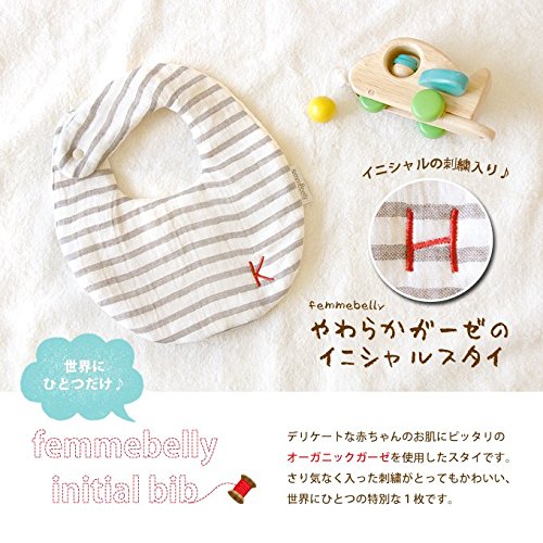 【やわらか6重ガーゼの イニシャルスタイ】イニシャル刺繍入り デリケートな赤ちゃんのお肌にピッタリ♪ やわらか&ふんわり☆オーガニックガーゼ ファムベリー (イニシャル【H】)