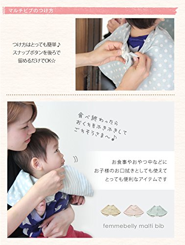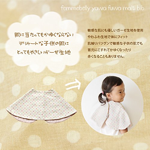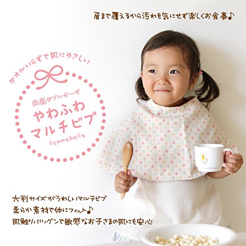 肌にとっても優しい両面ガーゼ素材を使ったマルチビブ♪ 大判サイズのお食事エプロンとしてはもちろん、 授乳後ママの肩にかけて、赤ちゃんをゲップさせる時の吐き戻し対策として、 大切なお洋服を汚れから守ります。 新生児期から3歳くらいまで長~く使えるのがうれしい♪