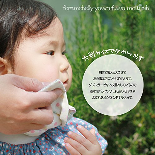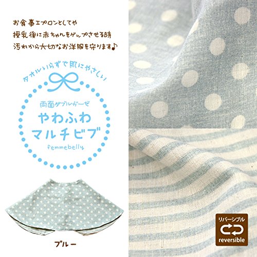 肌にとっても優しい両面ガーゼ素材を使った【やわふわマルチビブ♪】大判サイズのお食事エプロンとしてはもちろん、ママの肩にかければ、赤ちゃんをゲップさせる時の吐き戻し対策にも ◎日本製◎ ファムベリー (ブルー)