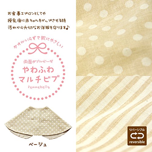 肌にとっても優しい両面ガーゼ素材を使った【やわふわマルチビブ♪】大判サイズのお食事エプロンとしてはもちろん、ママの肩にかければ、赤ちゃんをゲップさせる時の吐き戻し対策にも ◎日本製◎ ファムベリー (ベージュ)