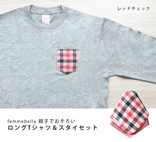 親子でおそろい☆長袖Tシャツ&スタイセット 【日本製】 気軽におそろいコーデが楽しめる♪ (レッドチェック【M】)