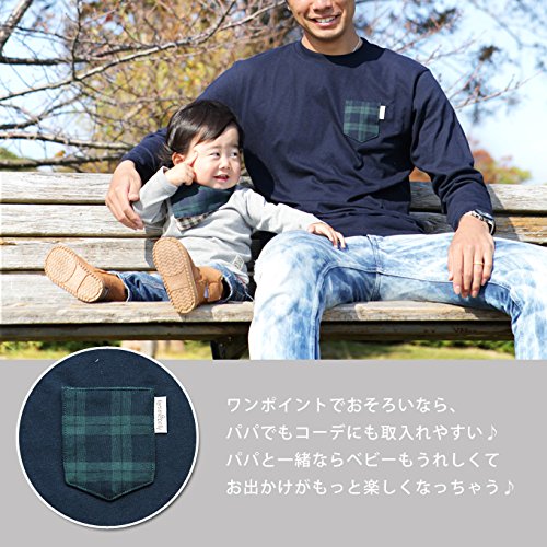 親子でおそろい☆長袖Tシャツ&スタイセット 【日本製】 気軽におそろいコーデが楽しめる♪ (ブラックウォッチ【L】)