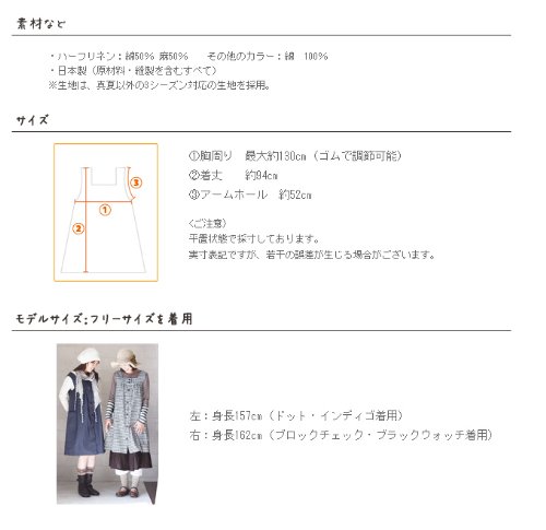- サイズ(平置き状態で採寸)/胸周り:最大で約130cm(ゴムで調節可能) 着丈:約94cm アームホール:約52cm