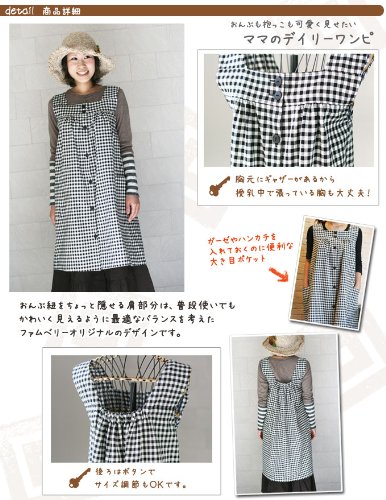 おんぶ紐って前から見ると胸が強調されてちょっと恥ずかしい。。。特にバッテンおんぶ紐だと、そのままの格好じゃオバサンみたいで気になる!そんなママたちといっしょに開発したのがこのママワンピです♪