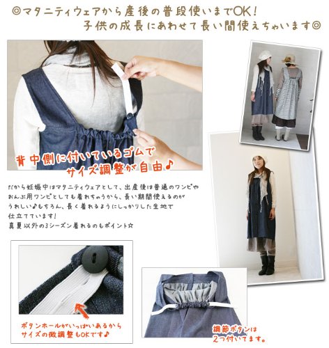 このワンピは、背中側に付いているゴムで自由にサイズ調整ができます(最大約130cm)。だから妊娠中はマタニティウェアとして、出産後は普通のワンピやおんぶ用ワンピとして長~く使えます!