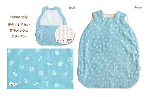 寝ている間のびっしょり汗を解決!背中メッシュのガーゼスリーパー【日本製】 ファムベリー (マリン)
