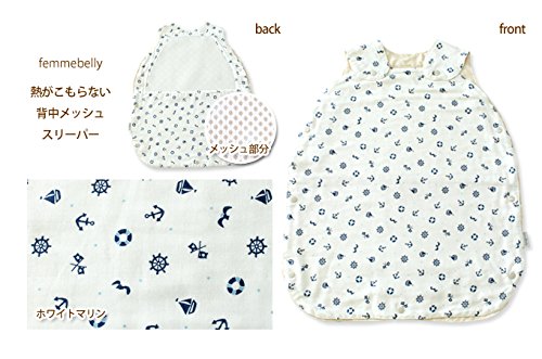 寝ている間のびっしょり汗を解決!背中メッシュのガーゼスリーパー【日本製】 ファムベリー (ホワイトマリン)