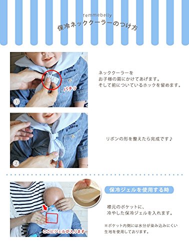 夏は外遊びやイベントが盛りだくさん!!お外にいる時は紫外線&暑さ対策を!! 夏は、公園などのいつものお遊びに加えて、ピクニックやキャンプ、テーマパークに行ったりなど、長時間お外で過ごす機会が多くなりますよね・・・ 大人に比べて肌の薄い子供は、紫外線のダメージを強く受けやすいので、紫外線や日除け対策が必要なんです!! 保冷ネッククーラーなら、ひんやり気持ちよく熱中症対策が出来ちゃいます! 大きめの襟が、首回りの日焼けも防いでくれるから安心!! UVカット率90%以上!抗菌・消臭・汚れ分解機能もついたスグレモノです。 首の後ろのポケットに、冷やした保冷材を入れるだけでひんや~り気持ちいい♪ プラスチックのホックでとめるだけなので、取り外しも簡単です。 リバーシブルでも使える、かわいいセーラー襟になっているので、普段は保冷材を入れずにおしゃれアイテムとしても使えちゃいます!