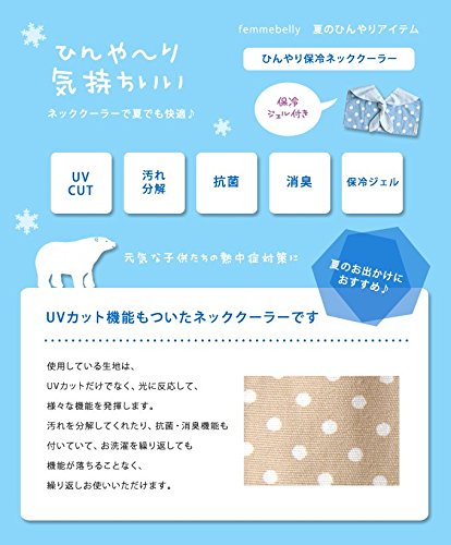 熱中症対策に!!ひんや~り気持ちいい☆保冷ネッククーラー【保冷ジェル付き】 大きめの襟が、首回りの日焼けも防いでくれるから安心!!UVカット機能もついたネッククーラー ファムベリー (ドットベージュ)