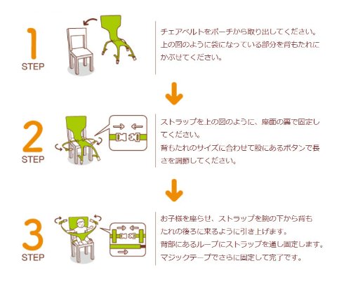 - 外出先に子供用の椅子が無くても安心。大人用の椅子に取り付け簡単。