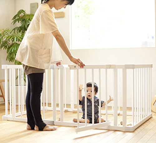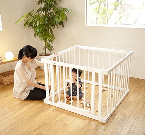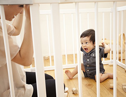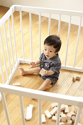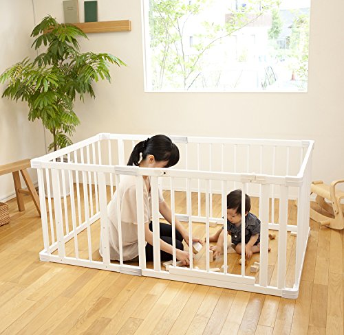 基本のプレイペンに180×180cm(内寸)のジョイントパネルが4枚プラスされたセット。 ・家事をする時に離れても、赤ちゃんの様子が確認できる見通しの良い柵なのでママも安心できます。