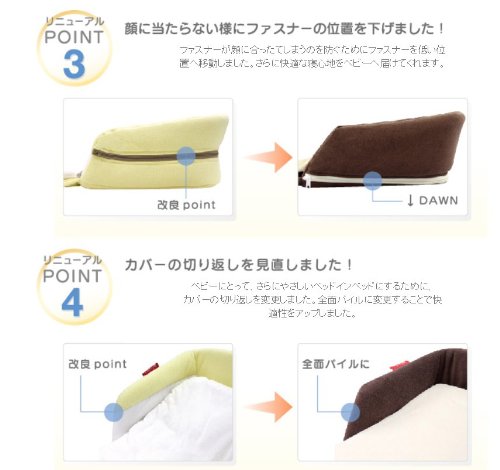 - [素材] 本体:生地 綿80% ポリエステル20% 詰物 ポリエステル100% フレーム:ポリプロピレン マット:側地 綿80% ポリエステル20% 詰物 ポリエステル100% 寝返り防止まくら:表生地 綿80% ポリエステル20% 裏生地 綿100% 詰物 ウレタン 帯(表) ポリエステル100% 帯(裏) 綿100% 傾斜クッションカバー:綿100%
